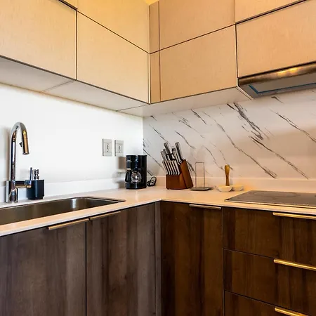 La cocina completa, completamente equipada para preparar comidas, incluye una cafetera/tetera y una nevera. La propiedad ofrece una terraza y una piscina en la azotea.